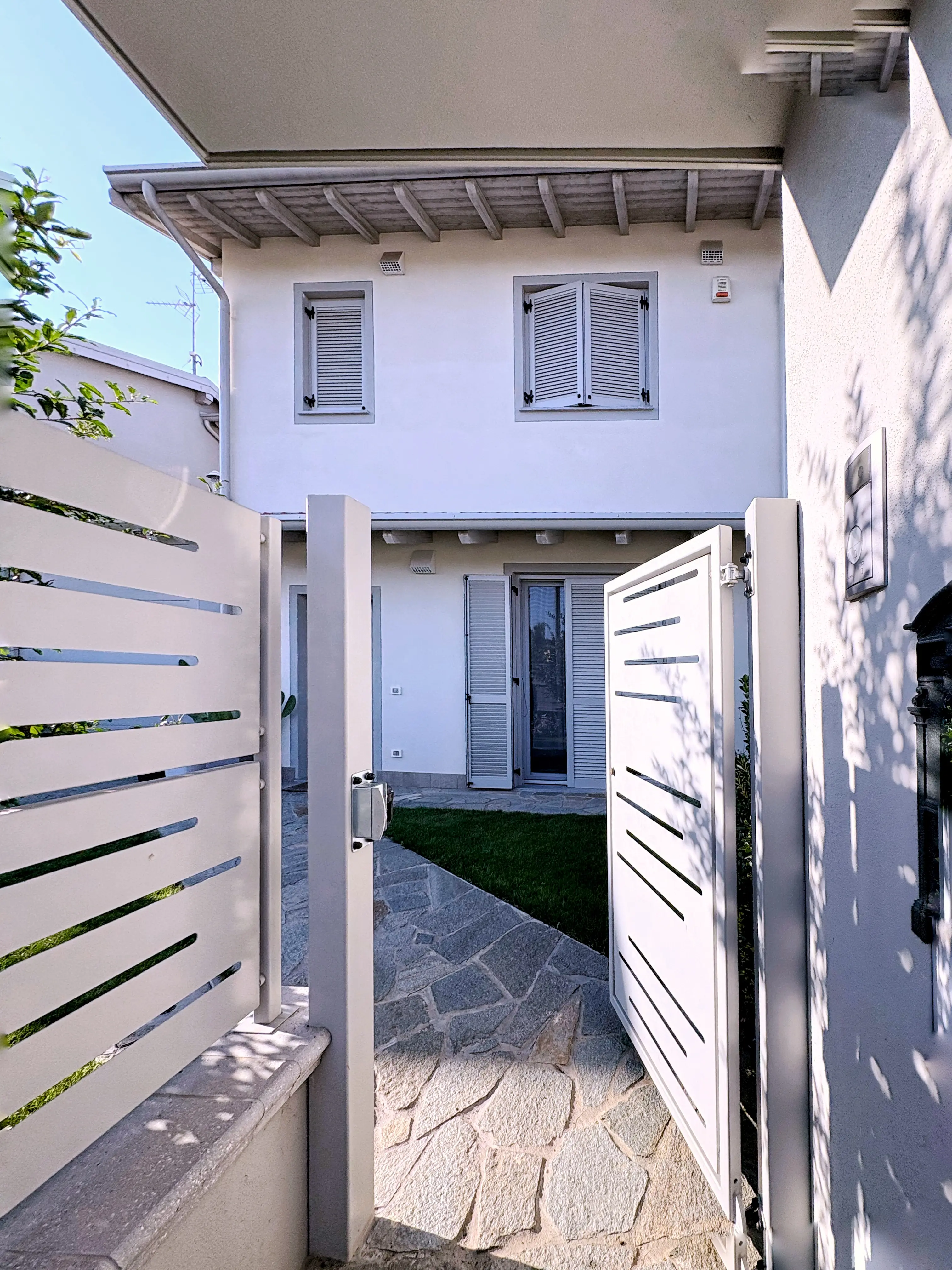 Ogni dettaglio è curato: tinte chiare, tetti ventilati con travi a vista, infissi moderni e finiture sobrie, fatte per durare.